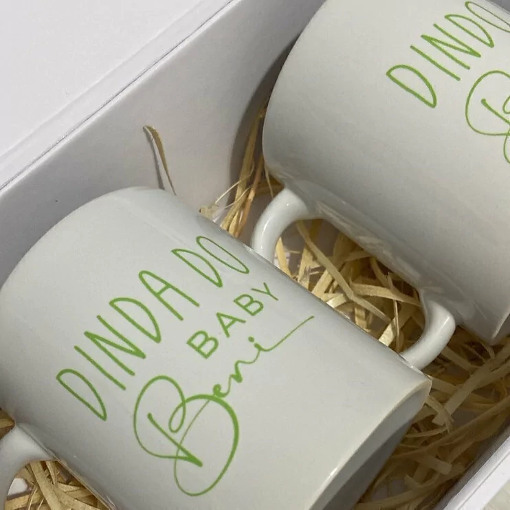 Caixa Master, com 2 canecas para padrinhos totalemte personalizada.